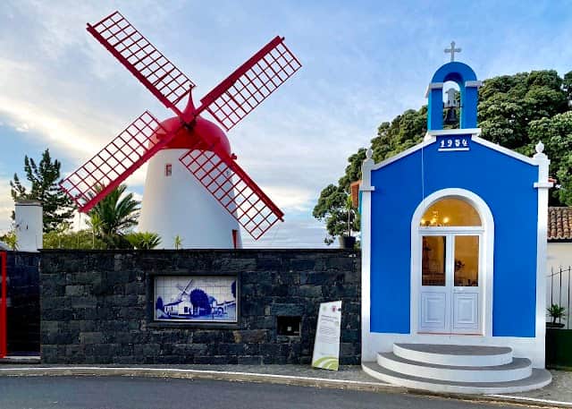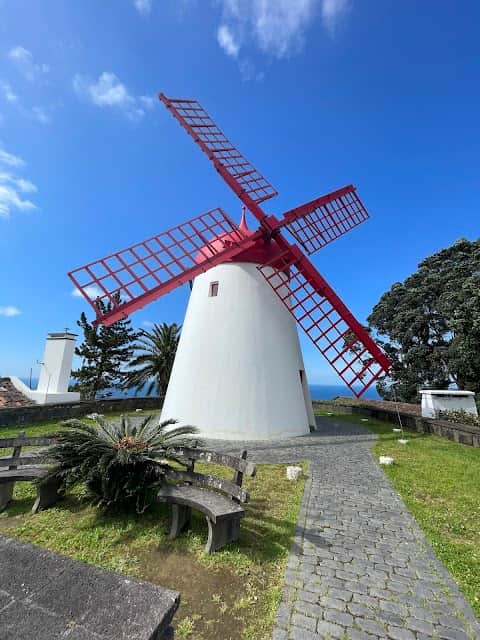 A historical windmill which was used to mill flours for the surrounding area. The windmill of Pico Vermelho is a perfect example of a traditional Azorean mill., It could be worth taking a look at this picturesque little place.